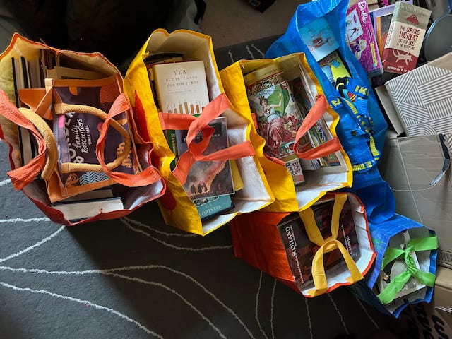 The outcome of the weekend was another van load taken away - everything from dexion shelving, two new internal doors, random bits of wood, bags of rubbish and plastic recycling (old tubs which had held screws, nuts, bolts, hinges and other metal fixings), large branches from an ivy bush, plastic boxes full of the metal fixings, a table and 6 bags full of books along with other bags for charity shops. Perhaps not ideally, I now have the six bags of books and another full of bags for the charity shop adding to the chaos that is my living room. Sorting these books is becoming a matter of urgency now.